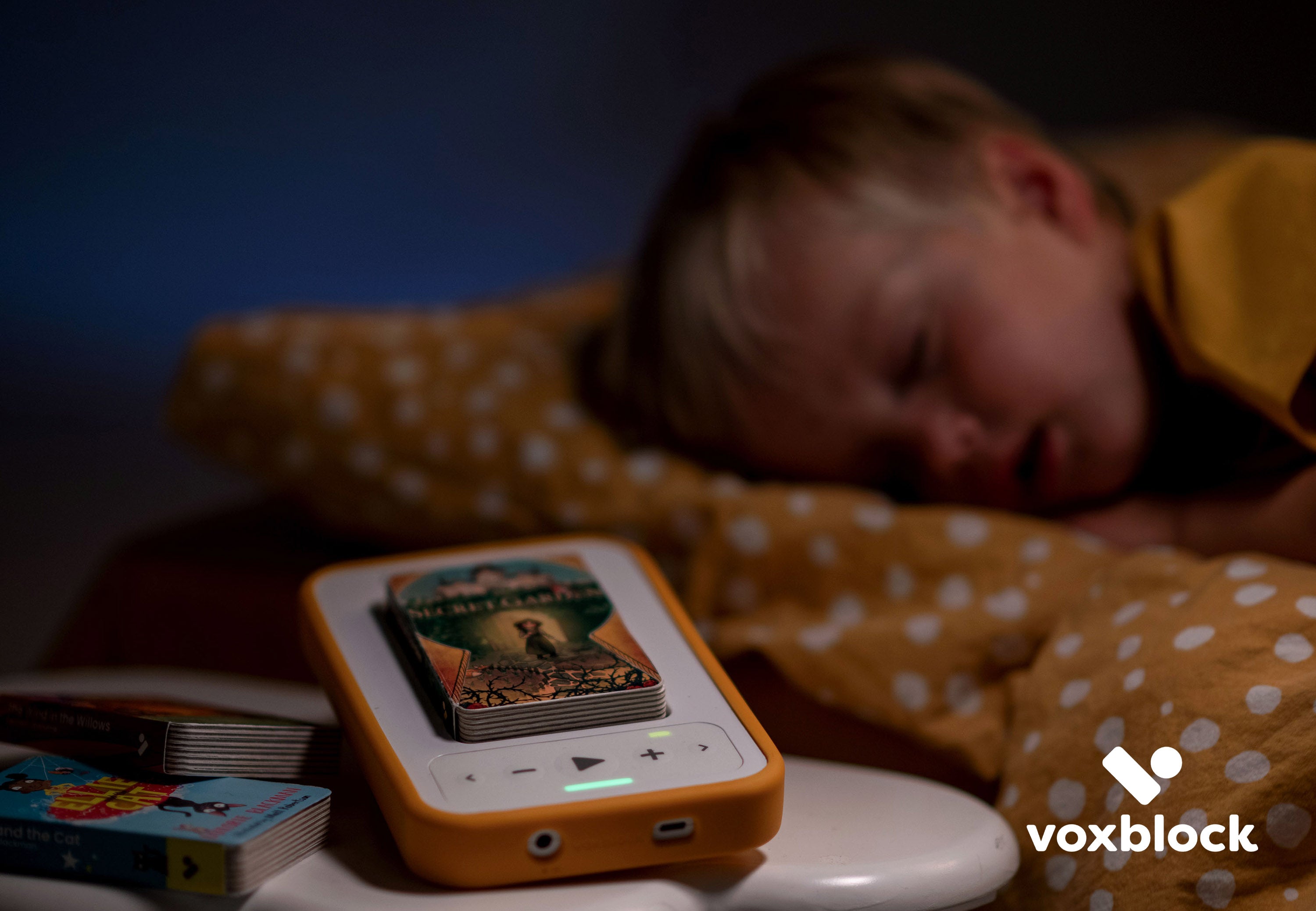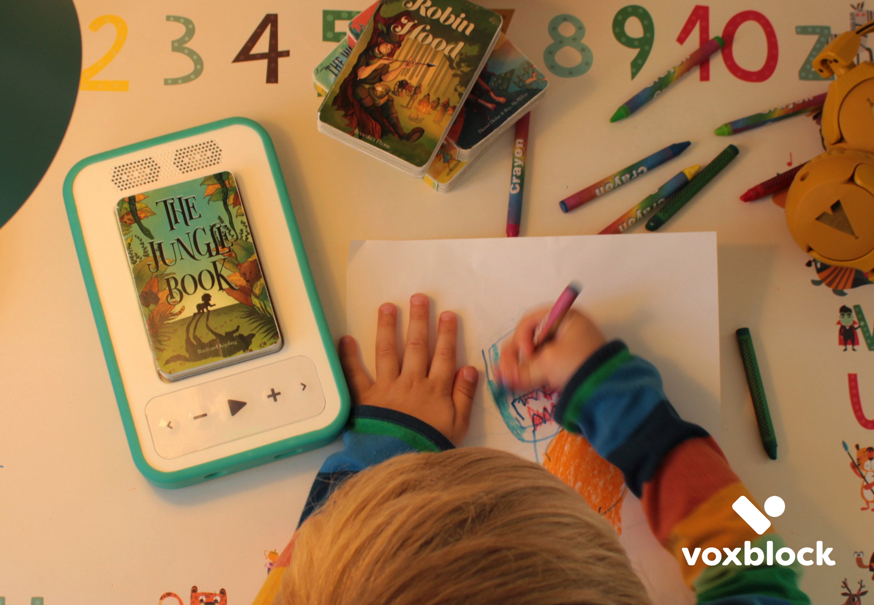 Voxblock is a screen free audiobook player for kids. Our content is stored on physical blocks to be played in our player, with no need for apps or wifi.