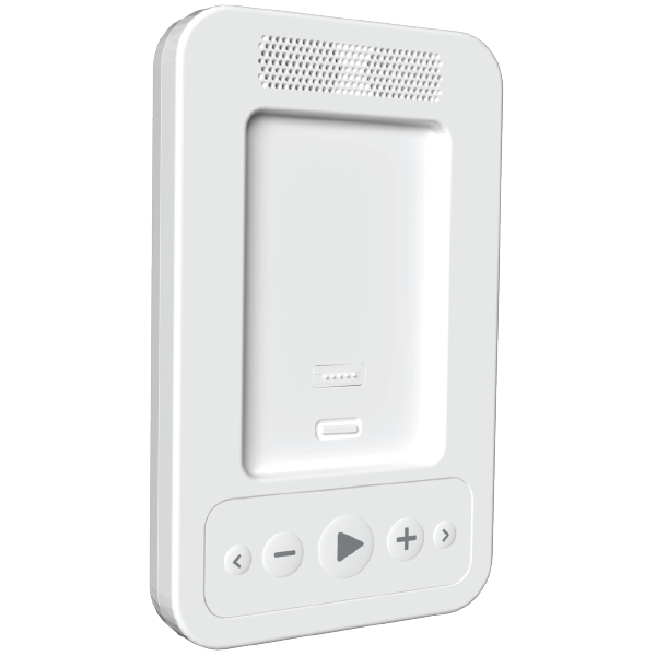 Voxblock is small enough to come with you in the car, on a plane, or on a train, and the battery lasts for days with just a single charge.