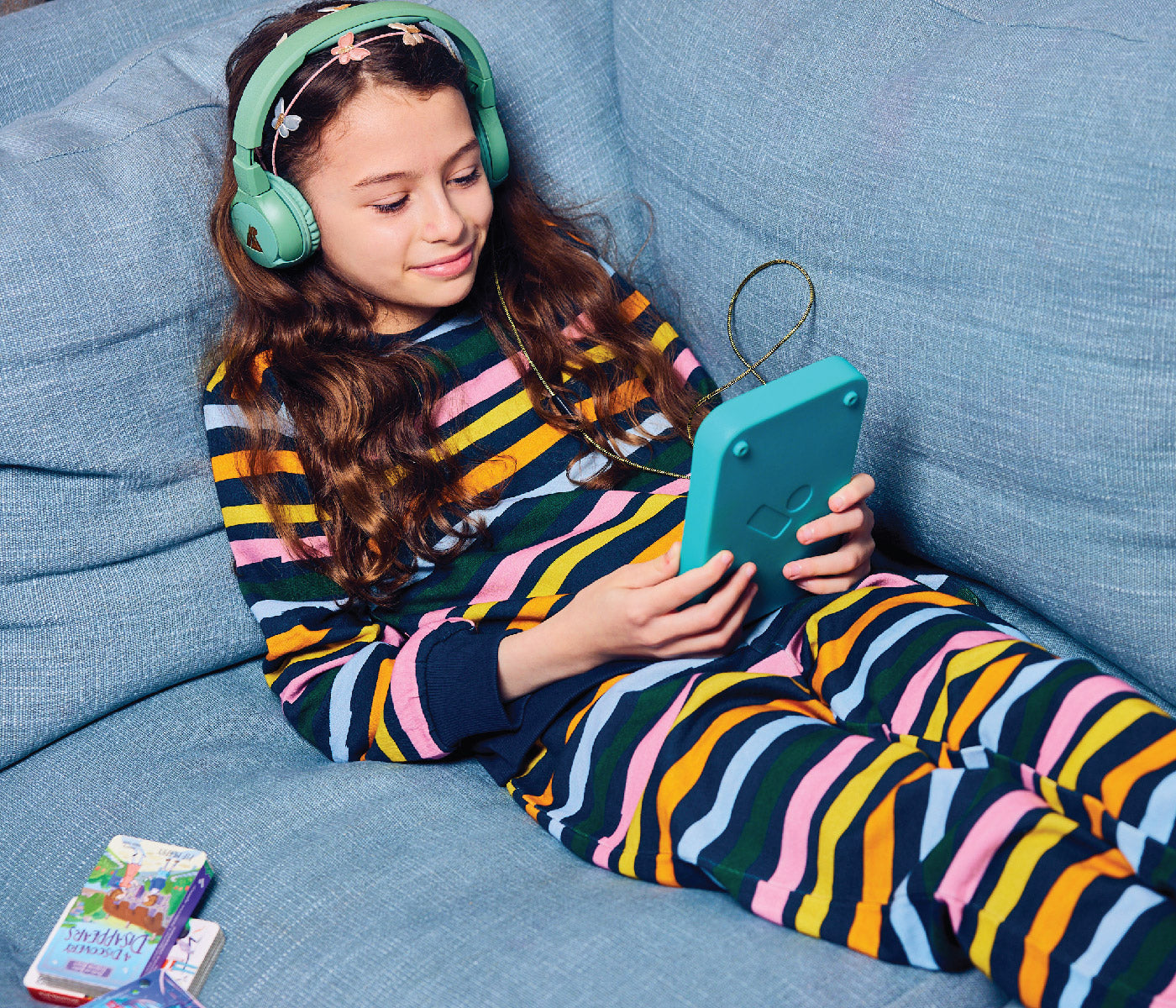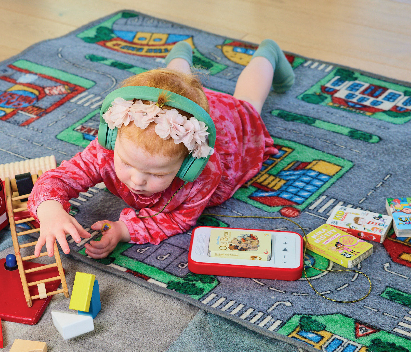 Listening is simple. Children press play and jump straight into a story, whether through the built-in speaker or with headphones. Sleep and travel modes make Voxblock part of bedtime routines and journeys.